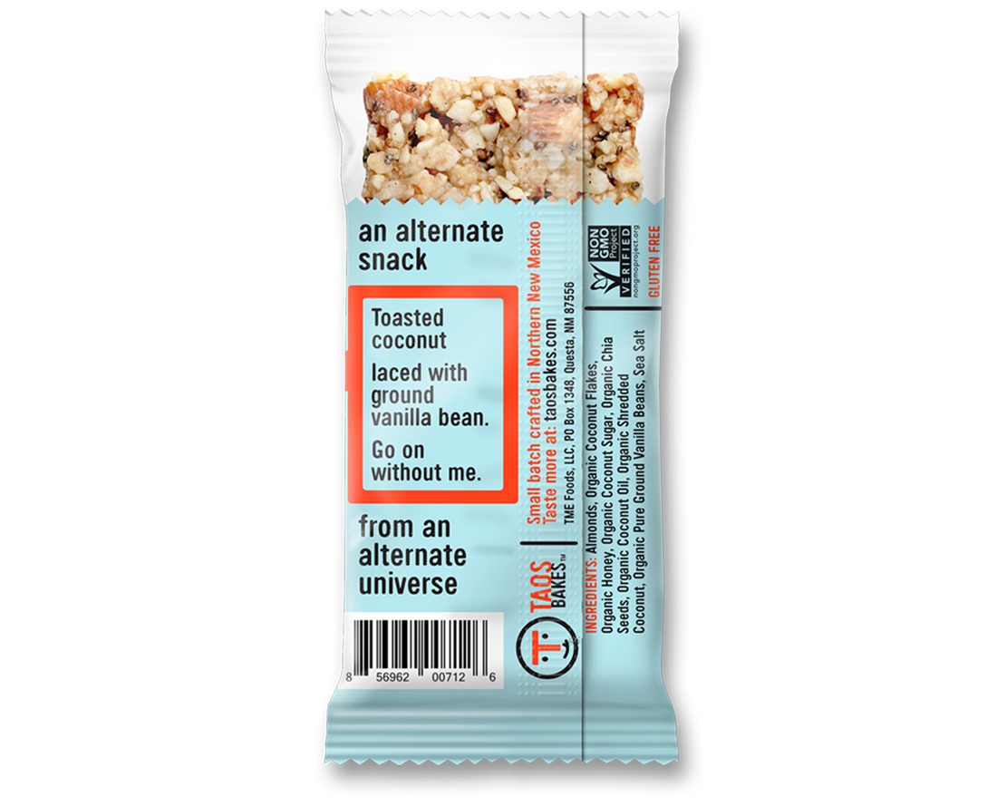 That’s where Taos Bakes comes in. We’re obsessed with great taste, the kind that you can see, smell, and feel. Our snacks (not to be confused with those lumpy cardboard-tasting bars you may have run into) live at the intersection of people, process, and food.